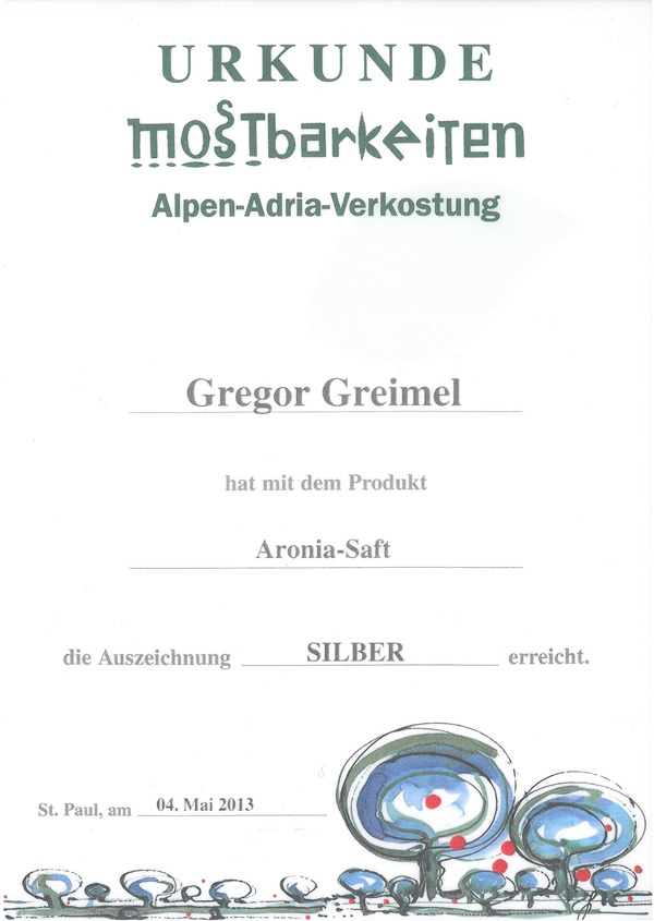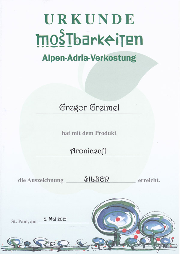 Ausgezeichnet durch Alpen Adria Verkostung (vergrößerte Ansicht auf klick)